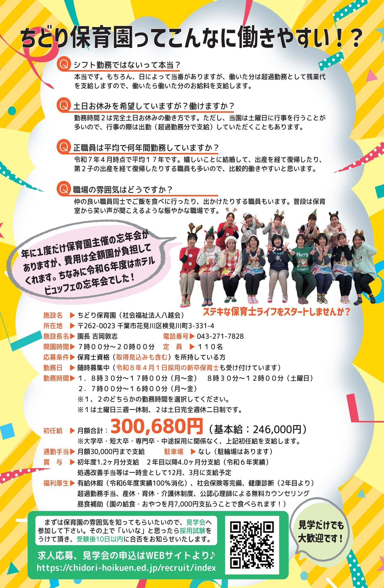 ちどり保育園の正職員保育士として勤務を希望される方は、必ず当園のホームページよりお申し込みください。
